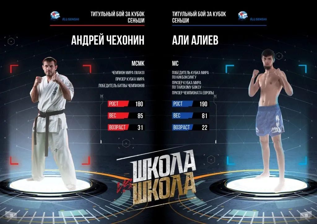 Турнирът ще предложи общо 8 сблъсъка, като един от тях ще бъде по правилата KWU SENSHI на Професионалната лига на Световния киокушин съюз. Един срещу друг ще се изправят световния шампион на WAKO PRO в стил „лоу кик“ в кат. до 85.1 кг, медалист от Световната купа и победител в „Битката на шампионите“ Андрей Чехонин срещу Али Алиев – носител на Световната купа по кикбокс, медалист от Световната купа по муай тай и настоящ шампион на Русия по муай тай.