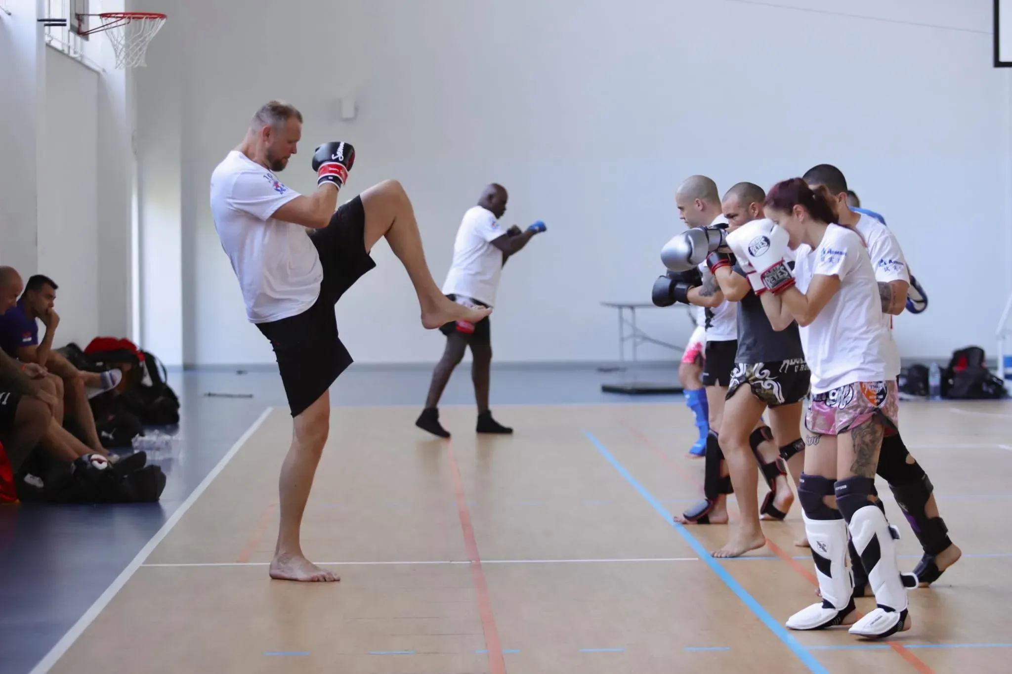 Трениращите отново бяха разделени на три групи, а нидерландксите величия започнаха обучението с прилична загрявка и стречинг. С всяко следващо упражнение задачата на бойците ставаше по-сложна, но това допълнително повдигна бойния дух в спортния комплекс в Камчия.