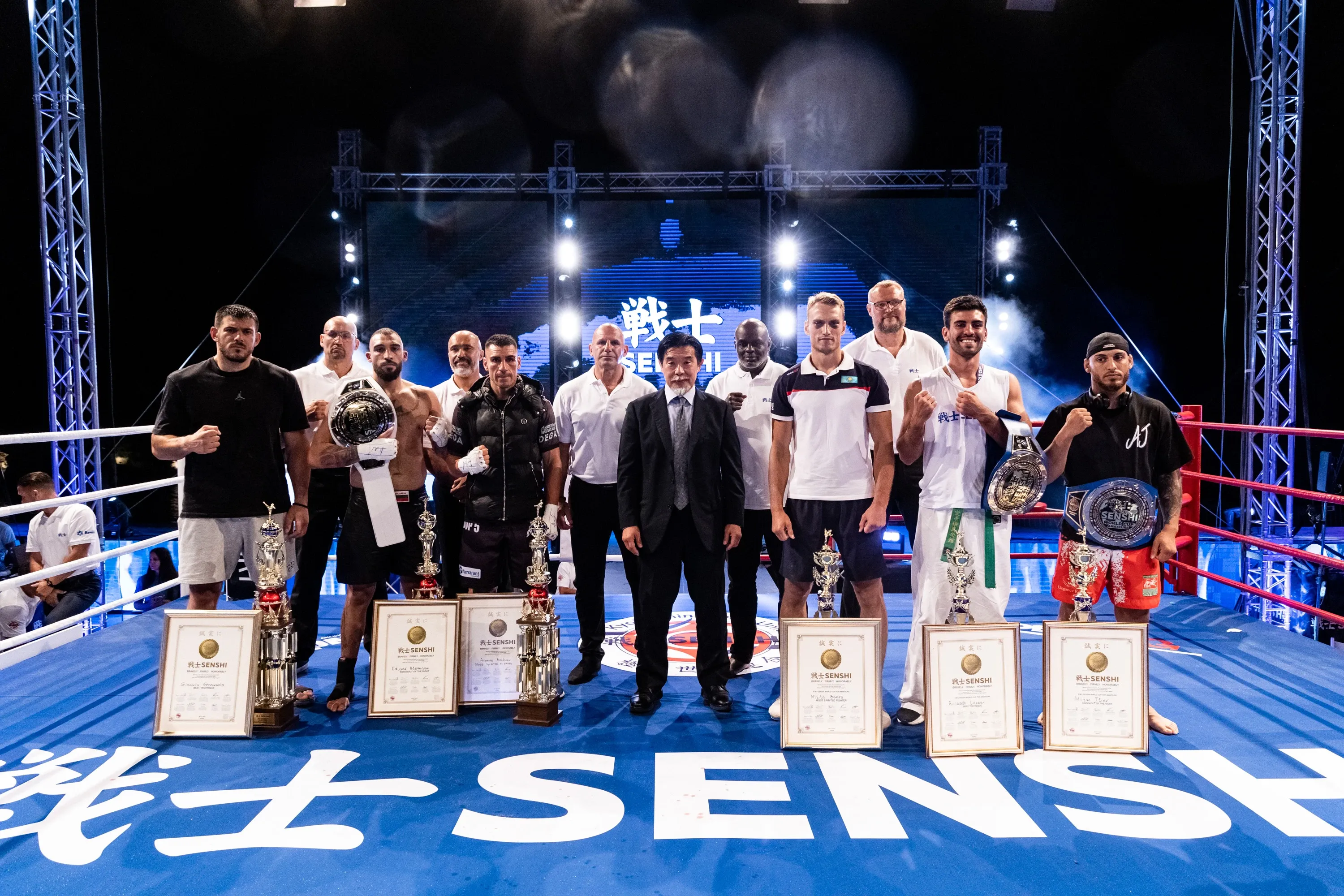 This time, SENSHI 22 surprised and gave its traditional special awards not to three fighters but to a total of six! The organizers presented special awards for “Knockout of the Night,” “Best Technique,” and “Fighting Spirit,” both for the champions of the five weight categories of the World Cup for amateurs and for the three professional fighters.