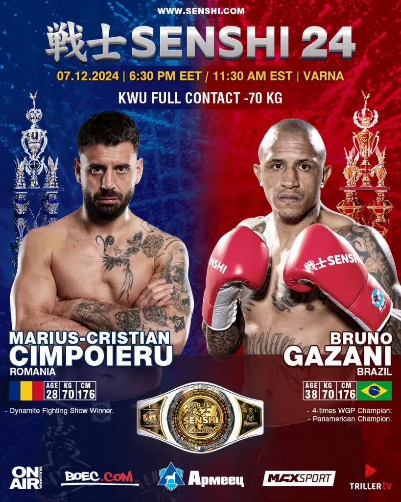 Bruno Gazani will be making his return to the SENSHI ring at the 24-th edition of the international fight event in Varna, Bulgaria. There he will face the Romanian Marius-Cristian Cimpoieru in the 70 kg. division. They fill fight by the KWU FULL CONTACT rules.
